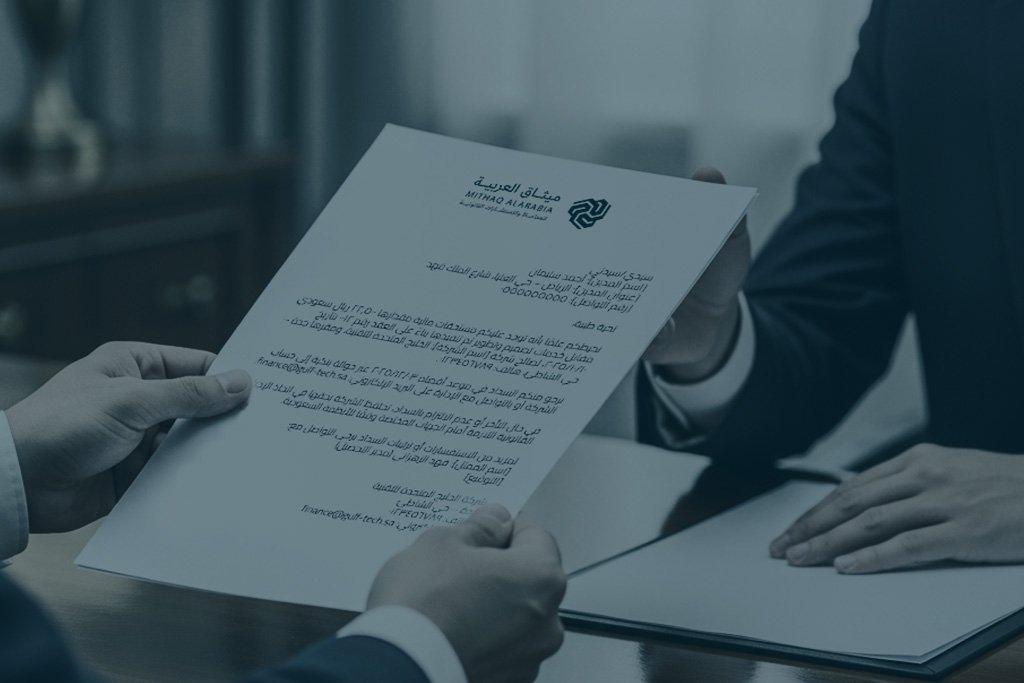 هل لديك ذمّة مالية متعثّرة أو فواتير غير مسدّدة؟ دع فريق «ميثاق العربية» يدير ملف التحصيل قانونيًا بكفاءة ووضوح.